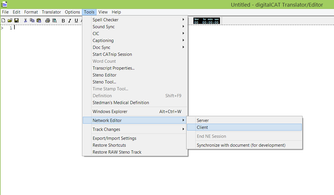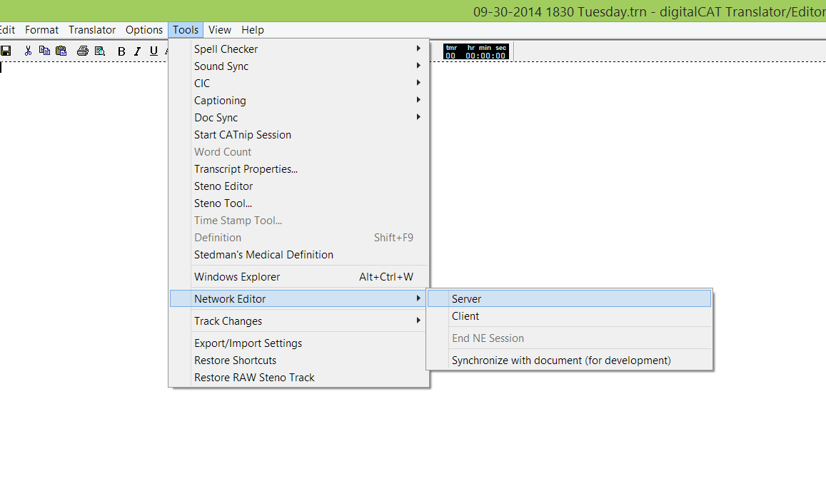 Network Editor is Digital CAT extension that allows for scopist to edit and attorneys to view transcript in realtime with court reporter. Actually court reporter's computer is network server and all connected users are clients, so its configuration is similar to any other client/server applications in local network (LAN).