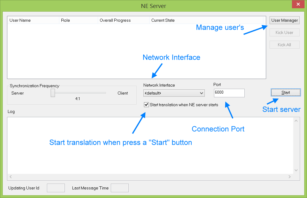 In most cases the only thing thatrequestyour attention is "User Manager" button that allows to configure access to a server.But you can always adjustserver'sparameters by the following options: