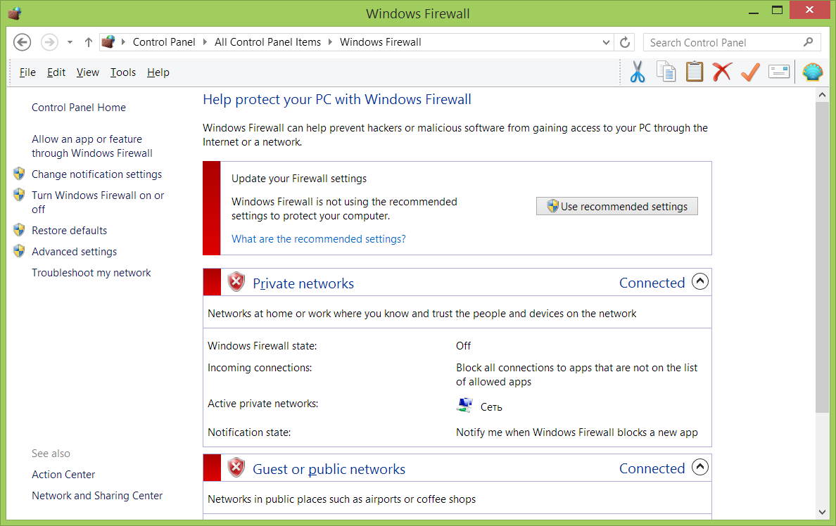 To do this open Control Panel > Windows Firewall (Fig. 1.1)
